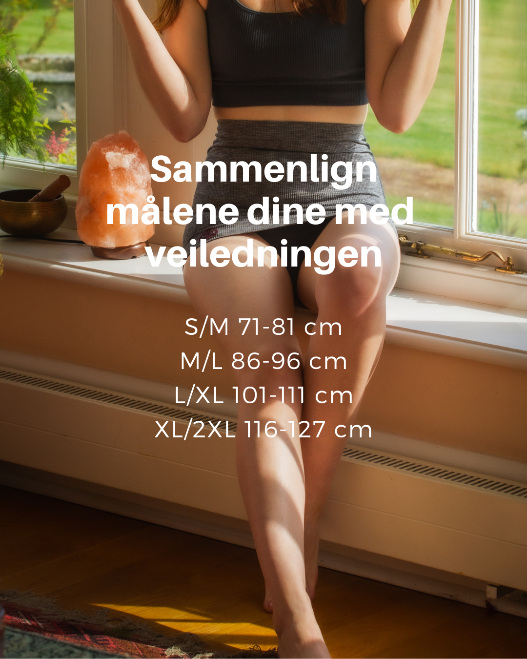 Plaggene er elastiske og størrelsene kan overlappe. Velg den størrelsen som passer best til hvor stramt du ønsker at plagget skal sitte.